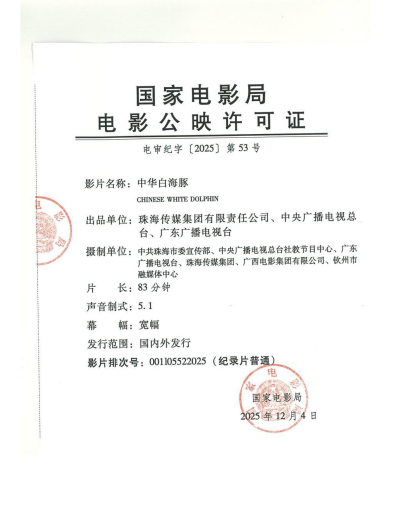 纪录电影《中华白海豚》聚焦 “海上大熊猫”全球仅存 6000 头的中华白海豚,既是展现其生存史诗的视觉盛宴,更是人与濒危生灵关于生命敬畏与生态坚守的真诚对话。