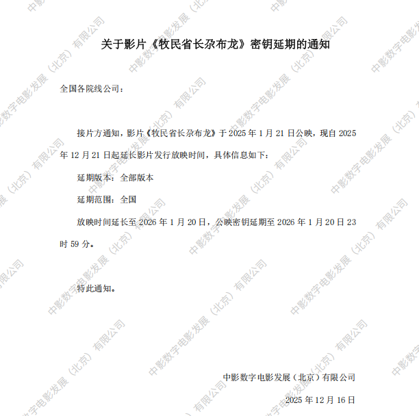 《牧民省长尕布龙》第十一次密钥延期的通知