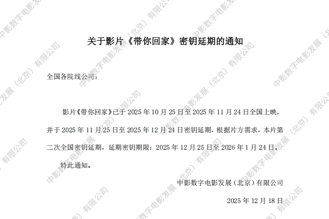 《带你回家》第二次密钥延期的通知