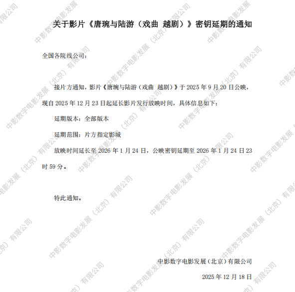 《唐婉与陆游(戏曲 越剧)》第三次密钥延期的通知