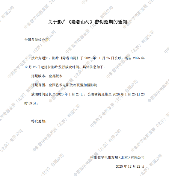 《隐者山河》密钥延期的通知