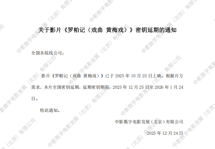 《罗帕记(戏曲 黄梅戏)》第二次密钥延期的通知