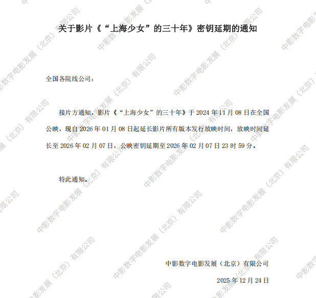 《“上海少女”的三十年》第十四次密钥延期的通知