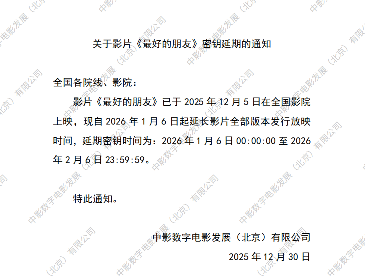 《最好的朋友》密钥延期的通知