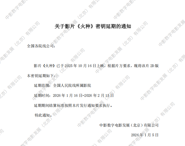《火种》第三次密钥延期的通知