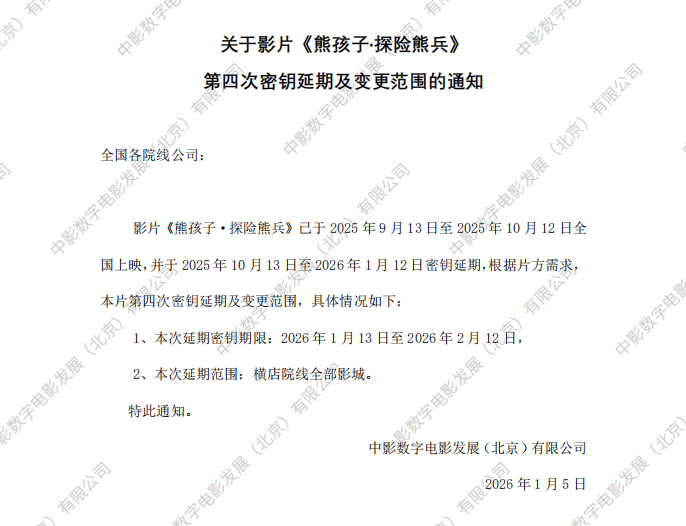 《熊孩子·探险熊兵》第四次密钥延期及变更范围的通知