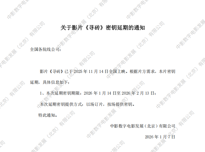 《寻砖》第二次密钥延期的通知