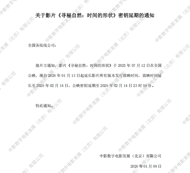 《寻秘自然:时间的形状》第六次密钥延期的通知