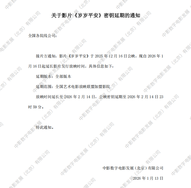 《岁岁平安》密钥延期的通知