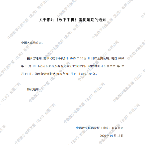 《放下手机》第三次密钥延期的通知