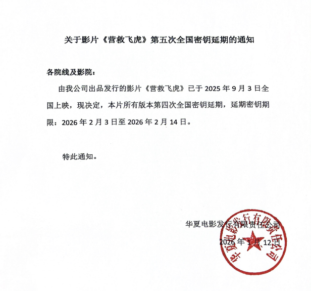 《营救飞虎》第五次密钥延期的通知