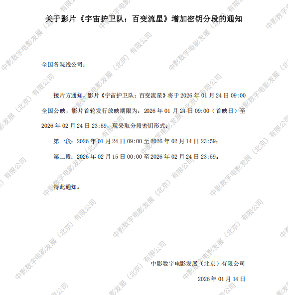 《宇宙护卫队:百变流星》增加密钥分段的通知