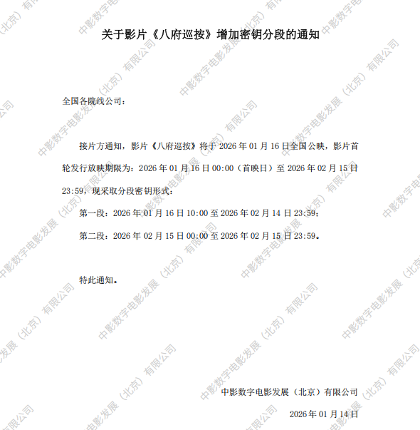 《八府巡按》增加密钥分段的通知