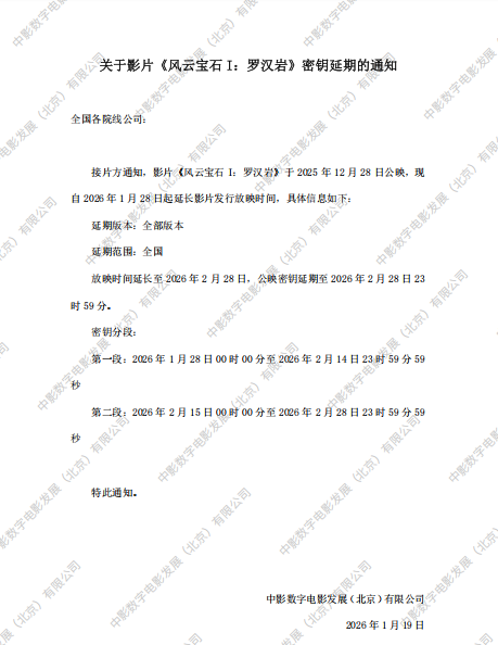 《风云宝石I:罗汉岩》密钥延期的通知