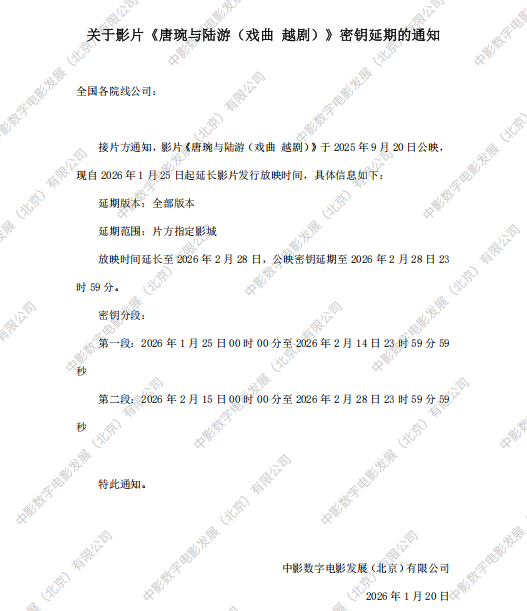 《唐婉与陆游(戏曲 越剧)》第四次密钥延期的通知