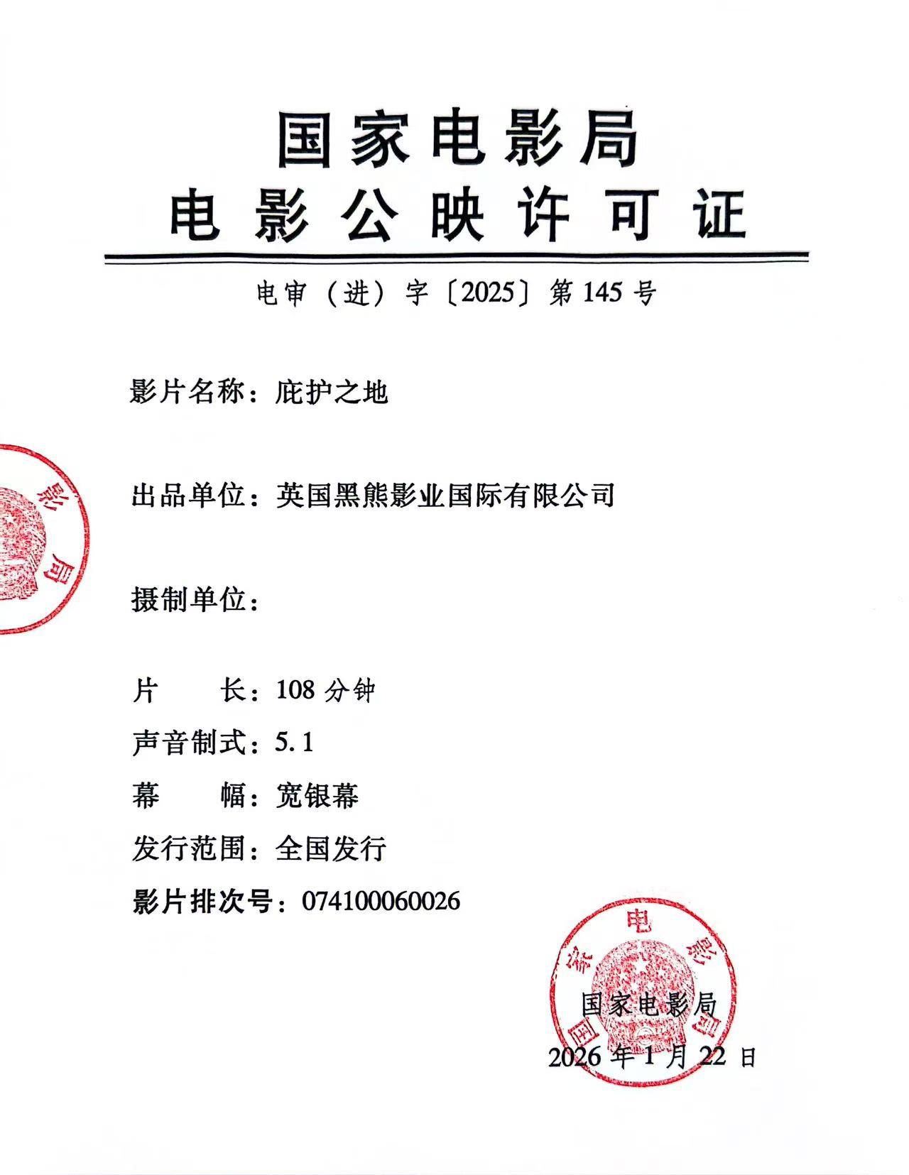 出 品:英国黑熊影业国际有限公司