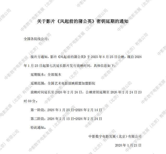 《风起前的蒲公英》第七次密钥延期的通知