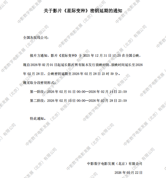 《星际变种》密钥延期的通知
