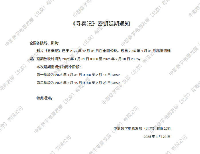 《寻秦记》密钥延期的通知