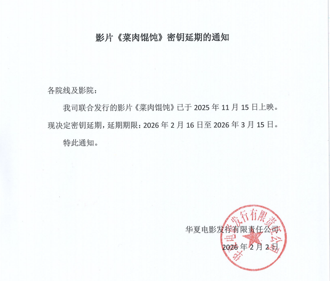 《菜肉馄饨》密钥延期的通知