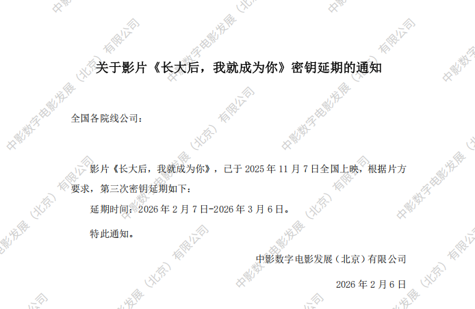 《长大后,我就成为你》第三次密钥延期的通知