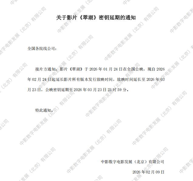 《翠湖》密钥延期的通知