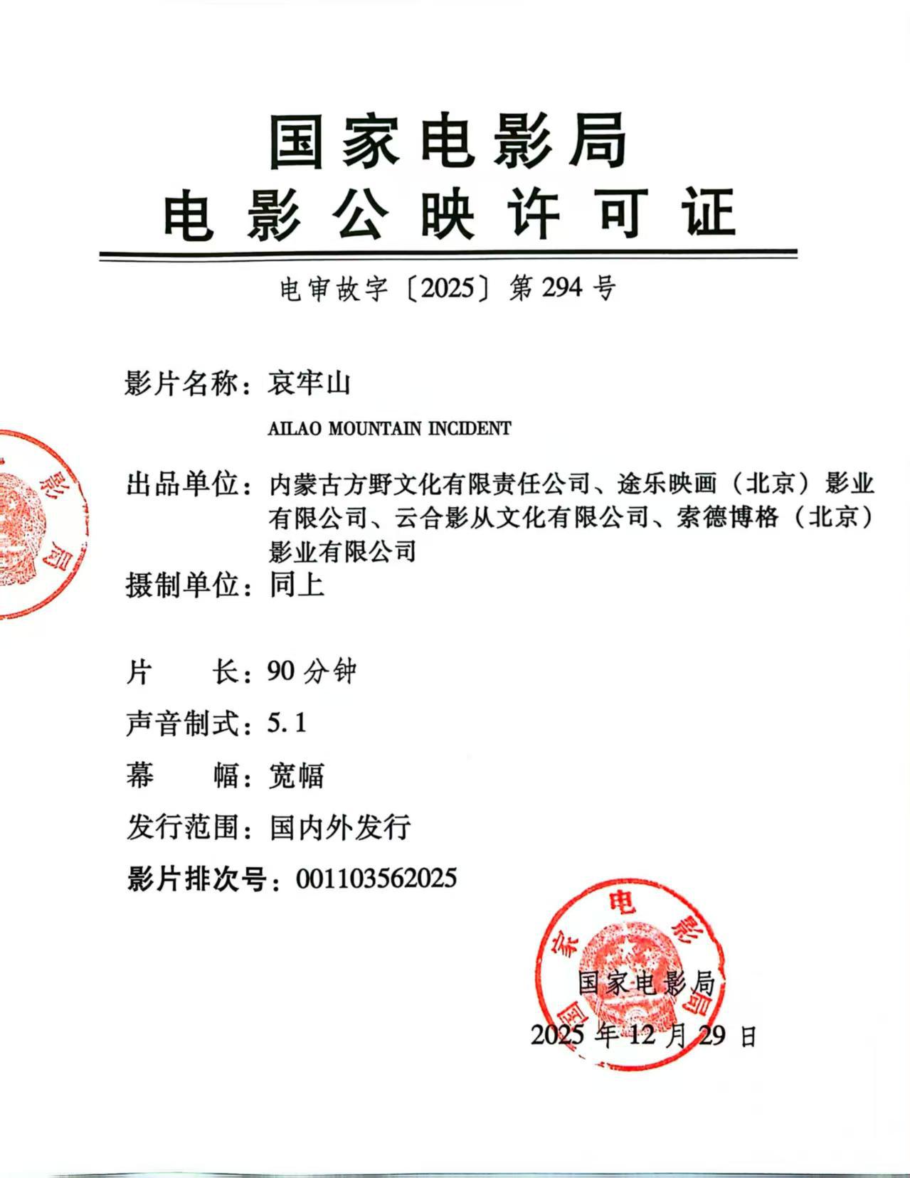 《哀牢山》发行通知