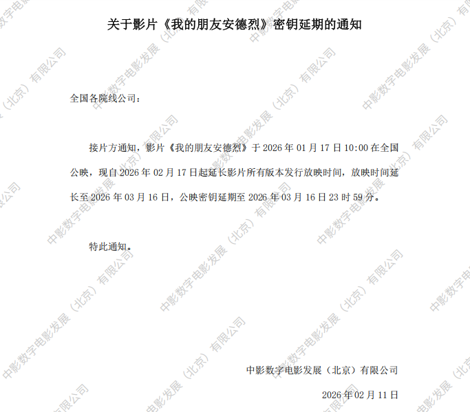 《我的朋友安德烈》密钥延期的通知