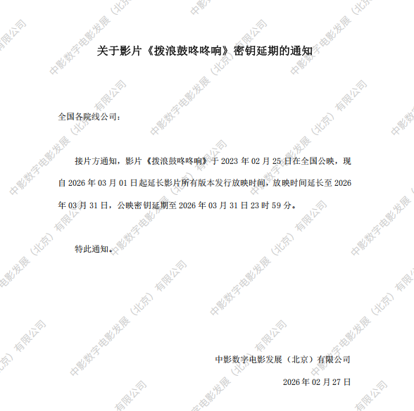 《拨浪鼓咚咚响》第三十六次密钥延期的通知