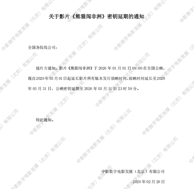 《熊猫闯非洲》第二次全国密钥延期的通知