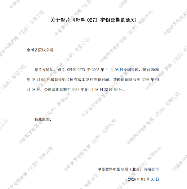 《呼叫207》第四次密钥延期的通知