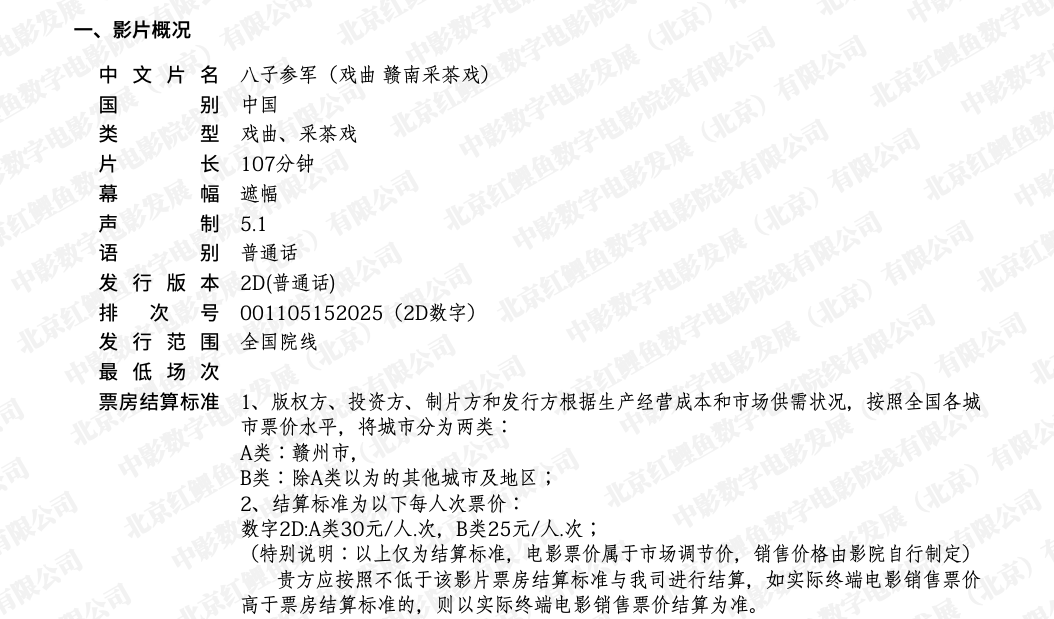 《八子参军(戏曲 赣南采茶戏)》发行通知