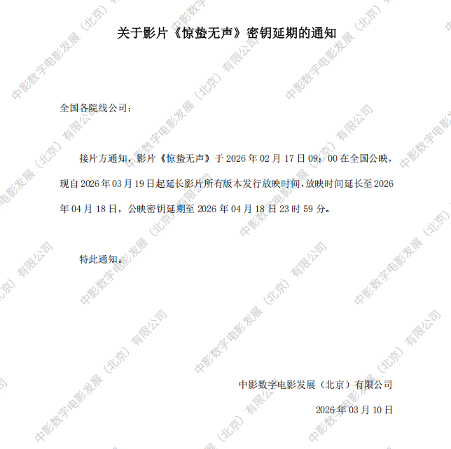 关于影片《惊蛰无声》密钥延期的通知