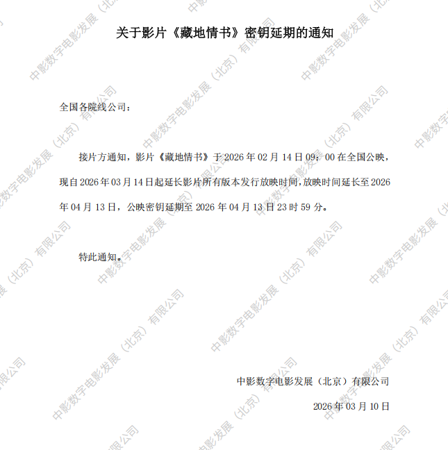 关于影片《藏地情书》密钥延期的通知