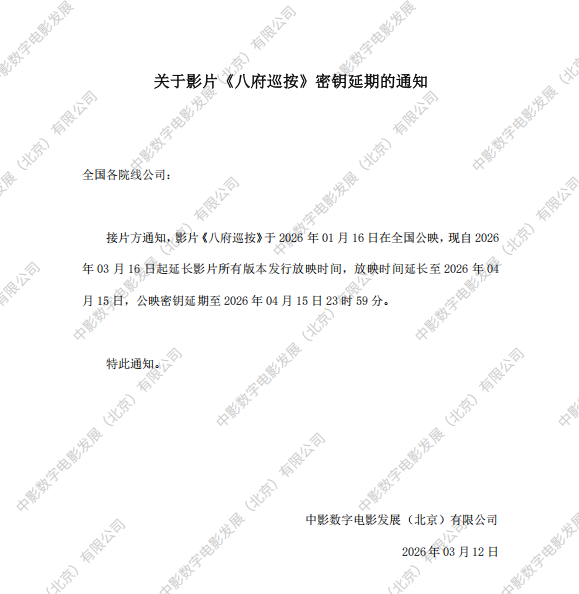 《八府巡按》第二次密钥延期的通知