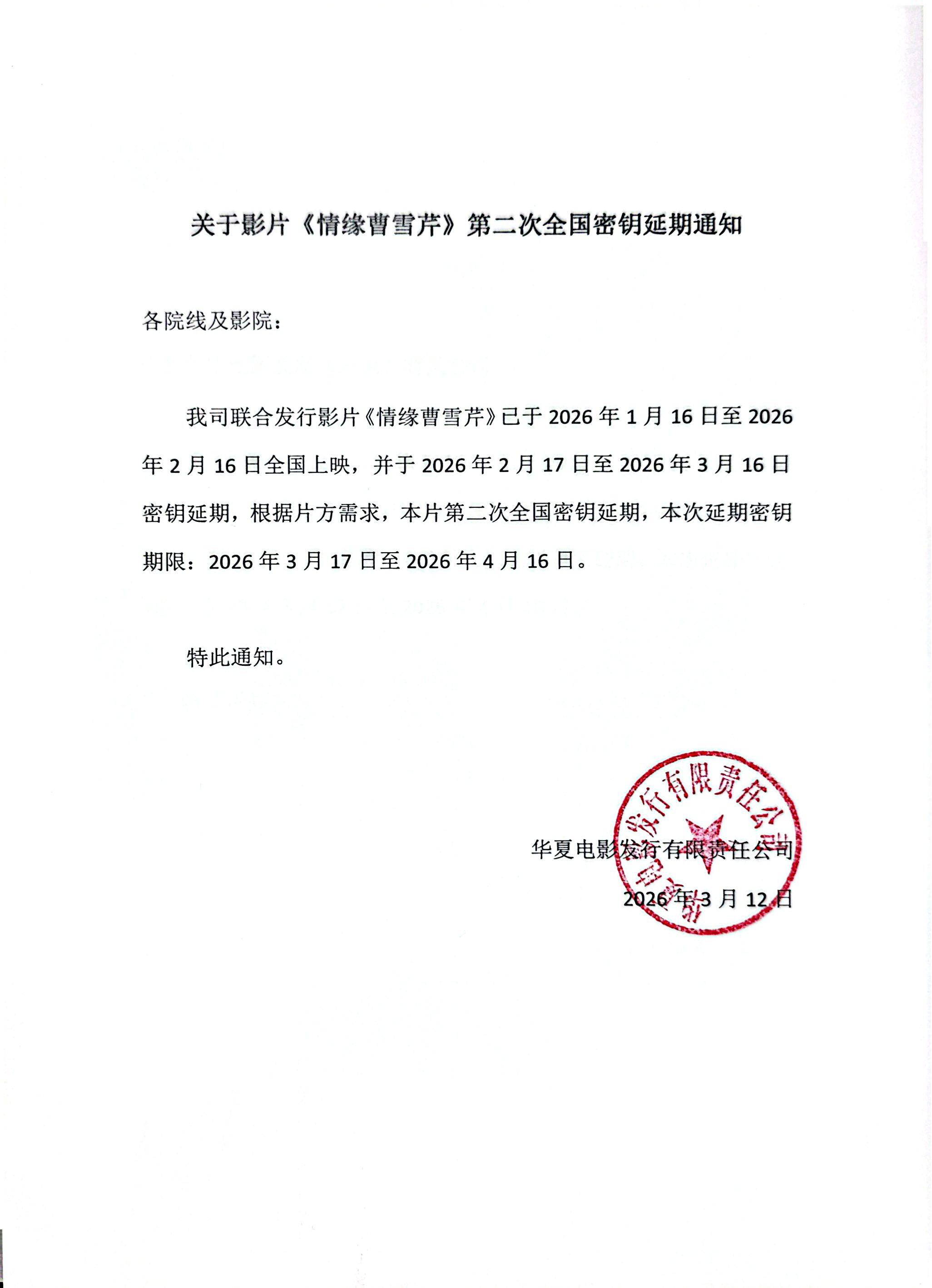 《情缘曹雪芹》第二次密钥延期的通知