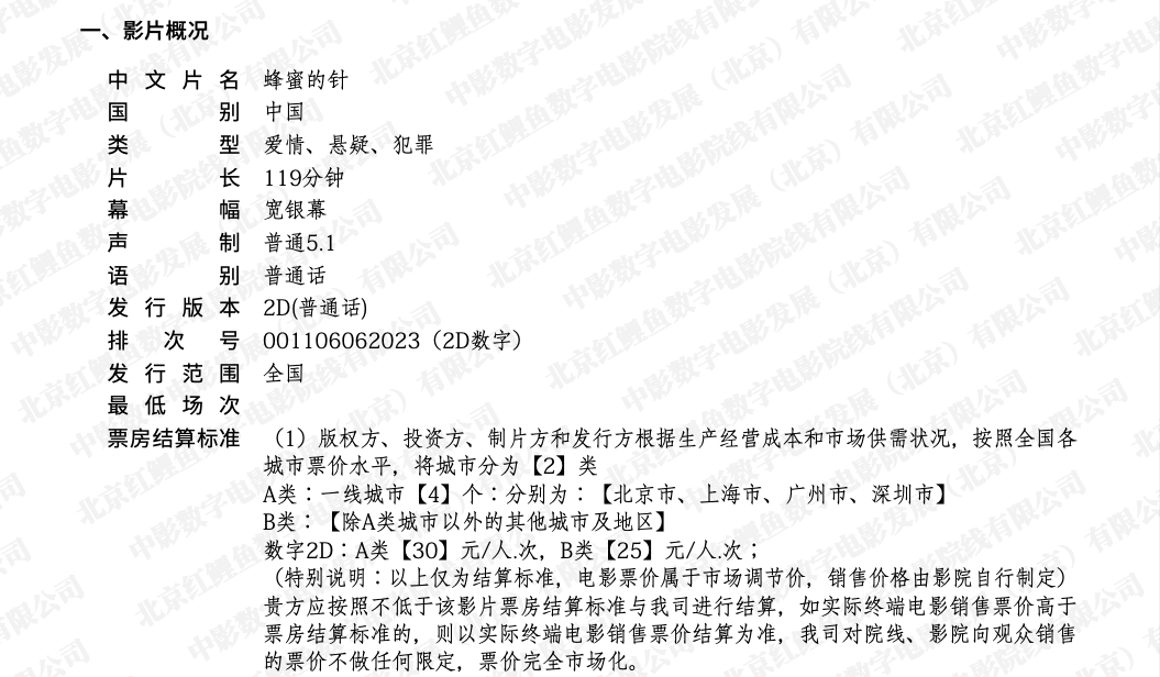 《蜂蜜的针》发行通知