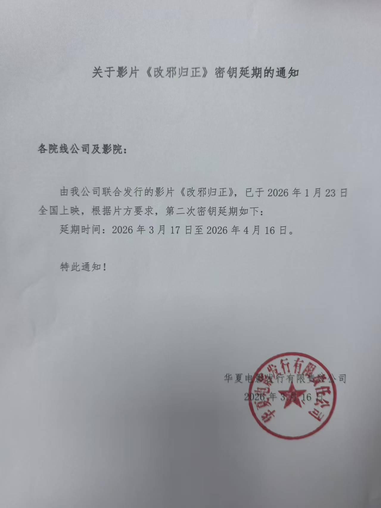 《改邪归正》密钥延期的通知