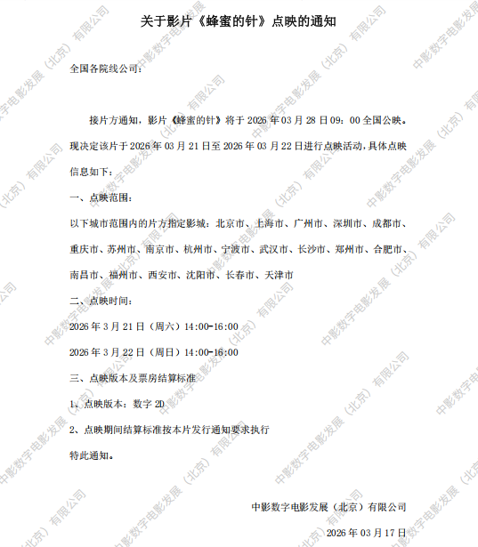 《蜜蜂的针》点映的通知