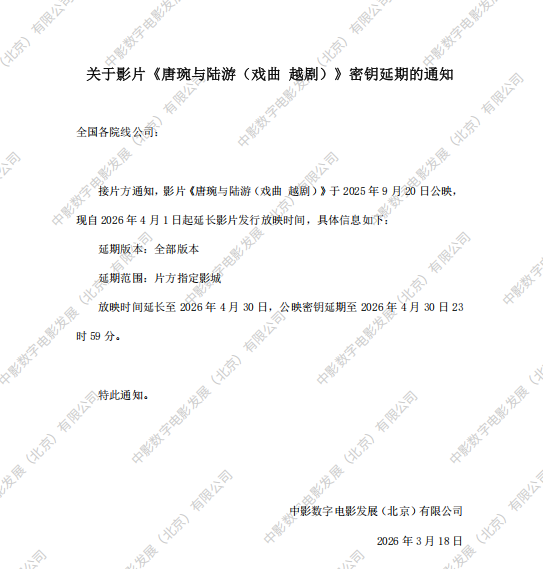 《唐婉与陆游(戏曲 越剧)》第六次密钥延期的通知
