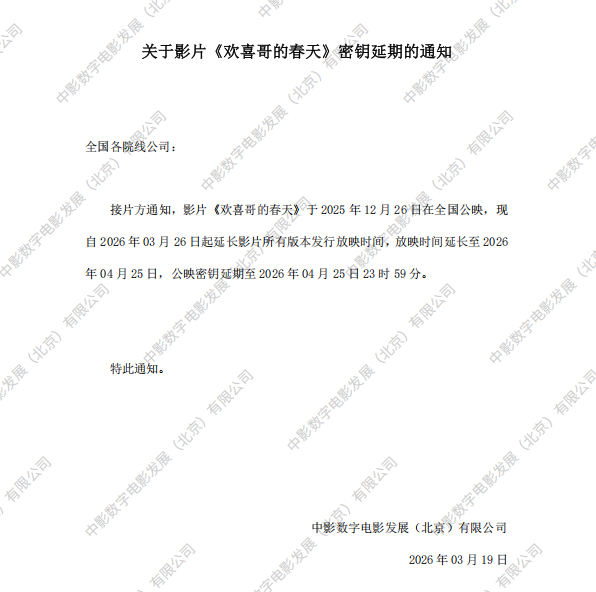 《欢喜哥的春天》第三次密钥延期的通知