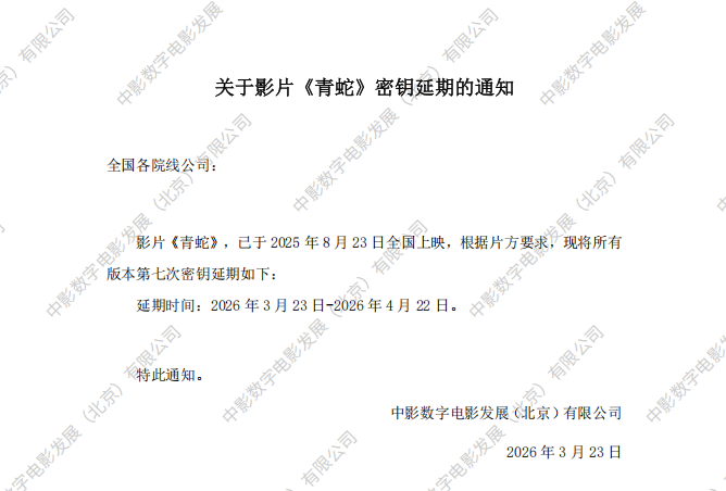 《青蛇》第七次密钥延期的通知