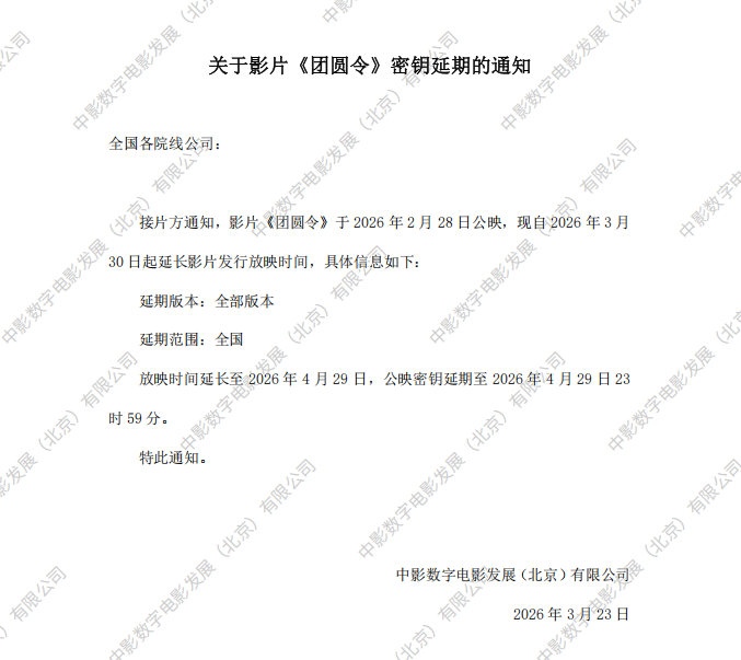 《团圆令》密钥延期的通知