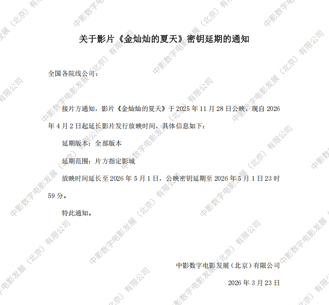 《金灿灿的夏天》第四次密钥延期的通知