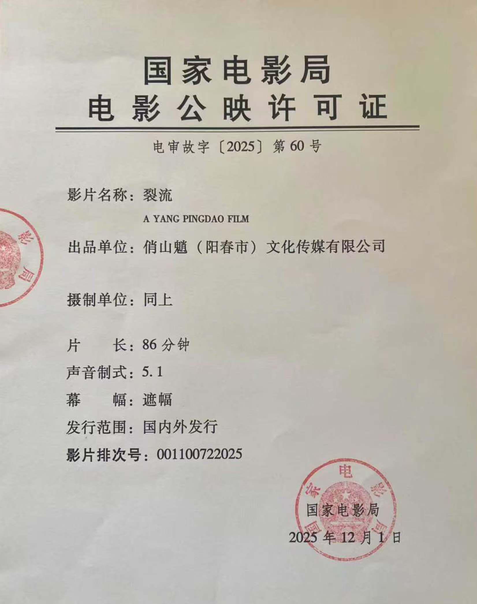 《裂流》发行通知