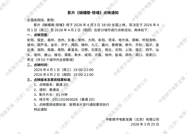 《蝴蝶楼·惊魂》点映的通知