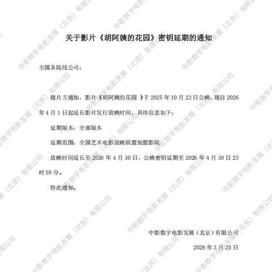 《胡阿姨的花园》第六次密钥延期的通知