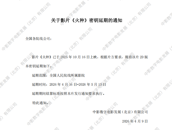 《火种》第六次密钥延期的通知