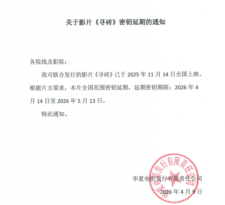 关于影片《寻砖》全国密钥延期通知