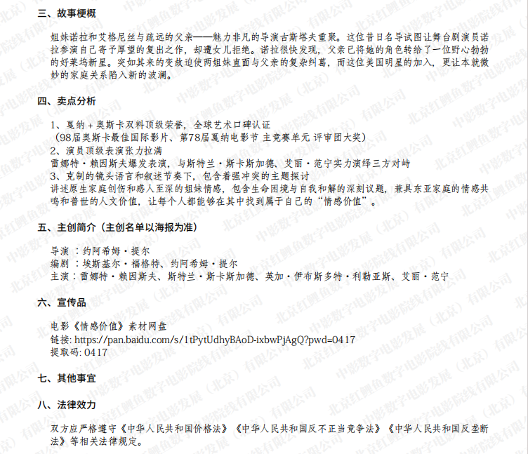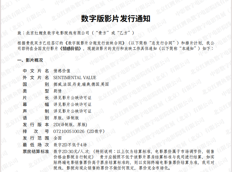【更新:排次号以此版为准】数字版影片《情感价值》发行通知